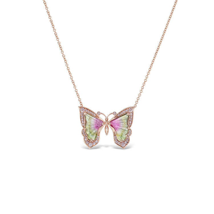 J Fine Green and Pink Tourmaline Butterfly Pendant