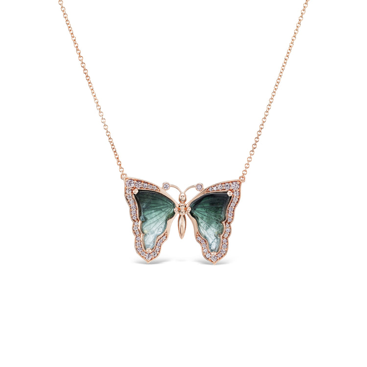 J Fine Green and White Tourmaline and Diamond Butterfly Pendant