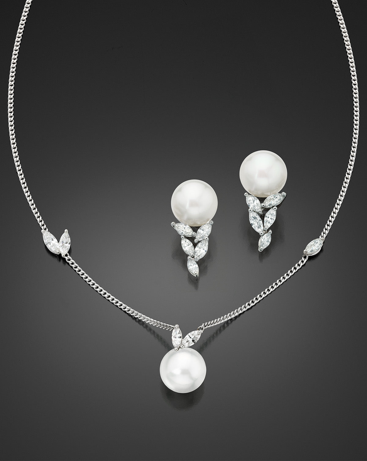 A single stunning South Sea Cultured Pearl, 10.5mm, is set in an 18” Platinum Necklace with 5 Marquise Diamonds. Wear it with or without its matching South Sea Earrings, 10.5mm, which are graced with 10 Marquise Diamonds. La Feuille Necklace and Earrings are available separately.