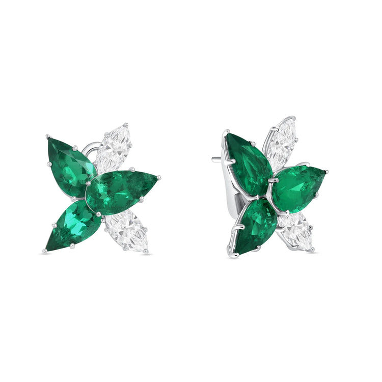 Marquise Diamond and Pear Shape Emerald Flower Earrings