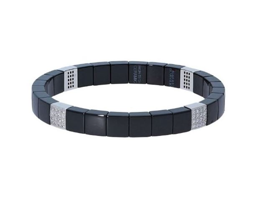 Handcrafted of matte black ceramic links, this chic stretch bracelet is accented with 18K white gold stations pavé-set with sparkling white diamonds.
