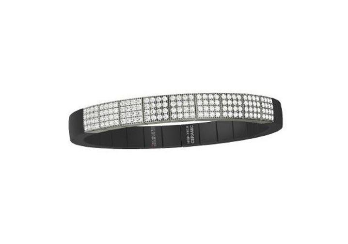 Flexible and dynamic, this stretch bracelet features matte black ceramic beads with 1.53 carats of pave set round diamonds in white gold.