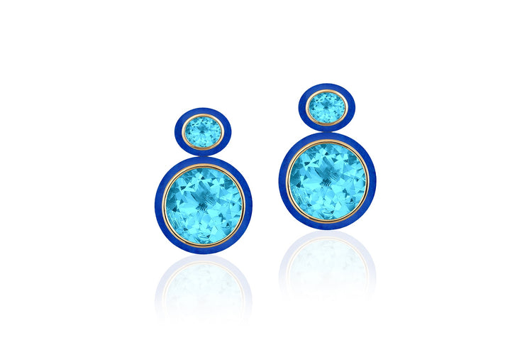 Shimmering in watery blue hues, these topaz and lapis earrings have a romantic, elegant look.