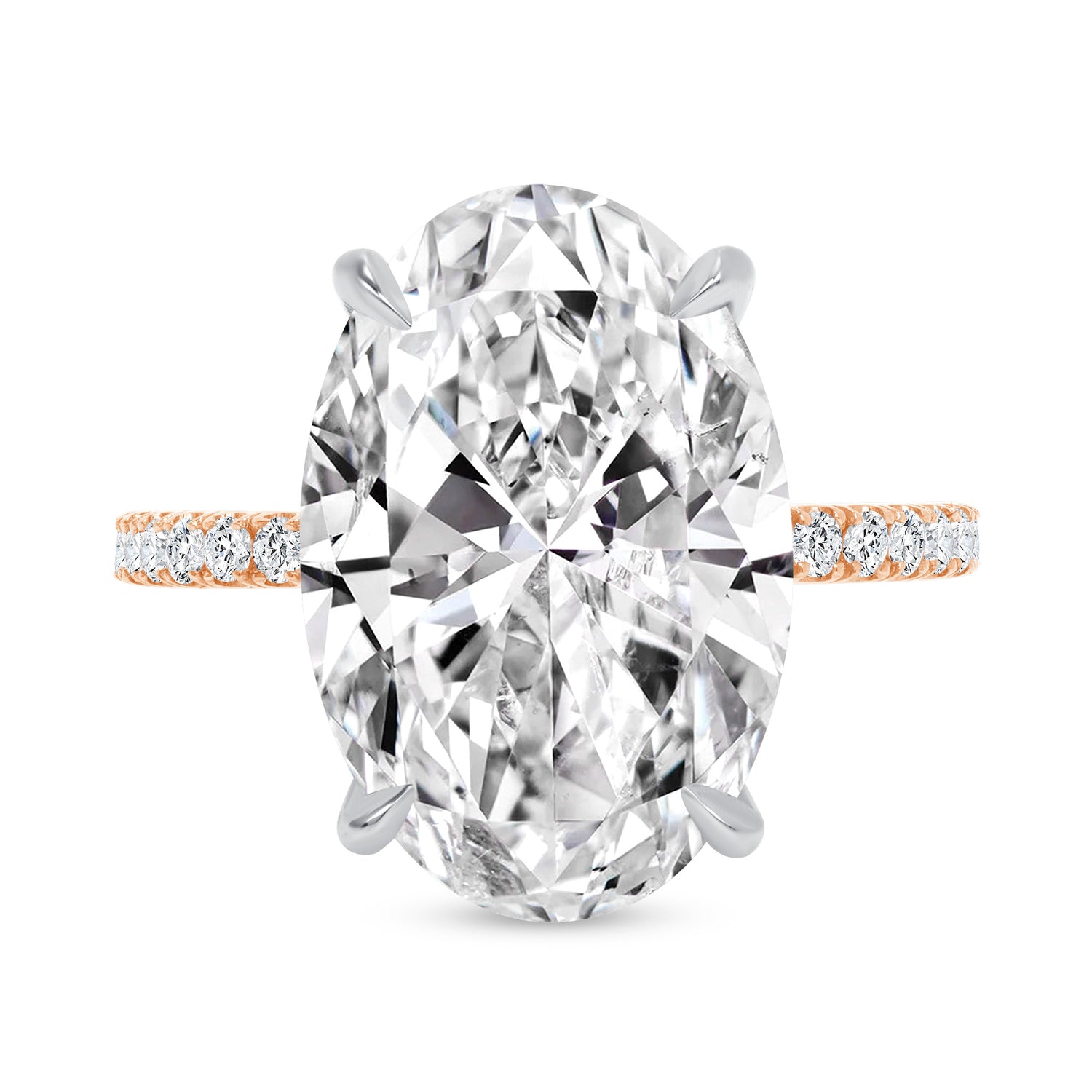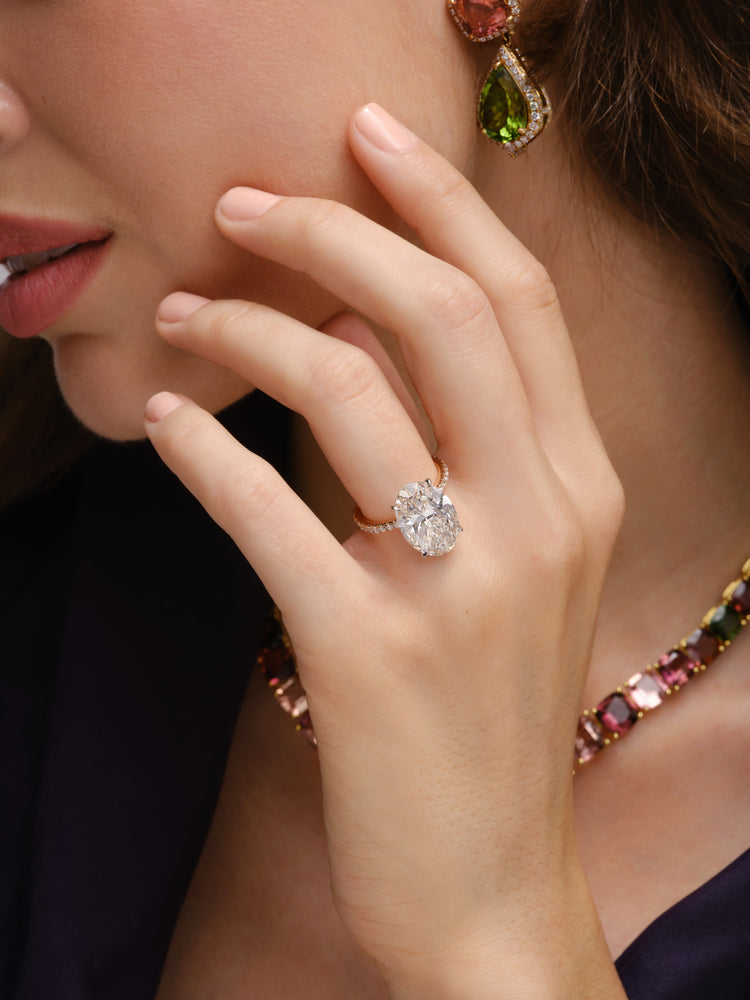 Oval Cut Diamond Solitaire Ring with Pavé Band