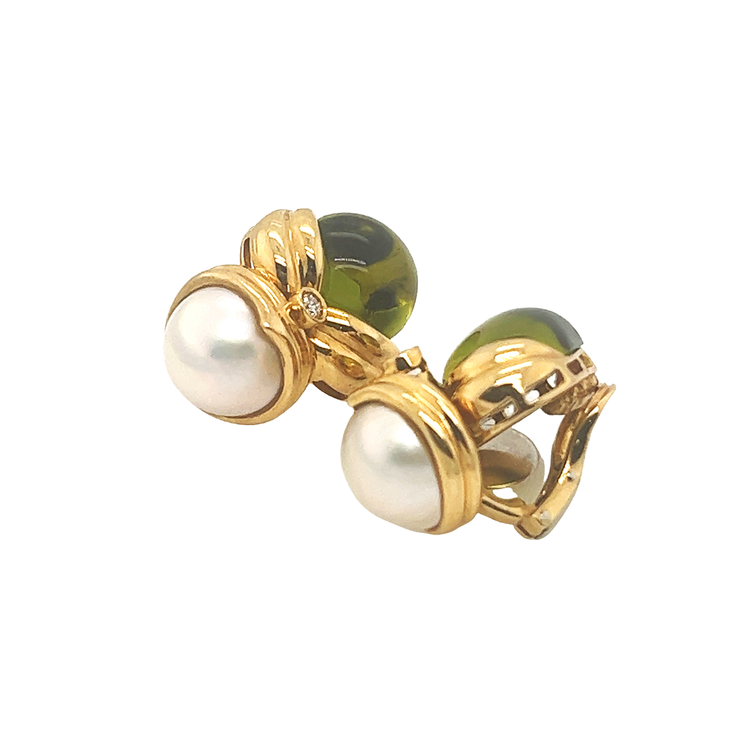 Peridot is an ancient gemstone with jewelry pieces dating all the way back to the Pharaohs in Egypt. The most desirable color of Peridot is deep olive-green, as shown here in this pair of vintage-inspired earrings. Juxtaposed with pearls, these add color and class to any look.