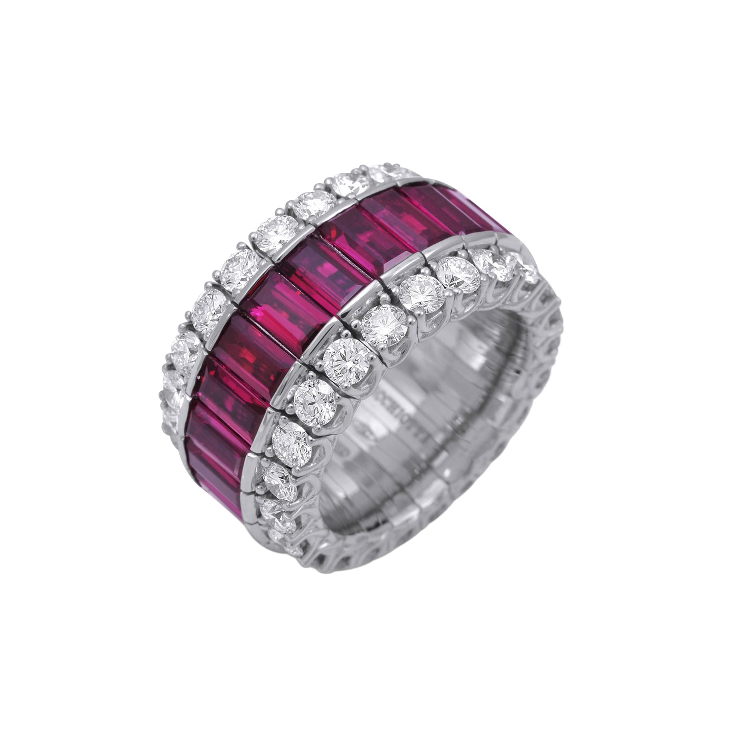 Picchiotti Xpandable™ 12.39CT Three Row Ruby and Diamond Mixed Cut Eternity Ring
