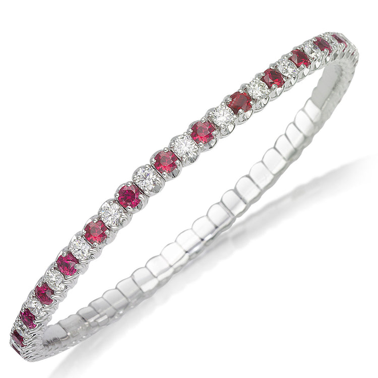 Picchiotti Xpandable™ 7.27CT Alternating Ruby and Diamond Round Cut Tennis Bracelet