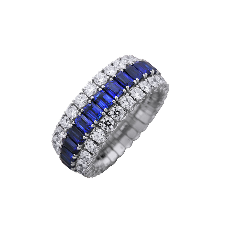 Picchiotti Xpandable™ 8.53CT Three Row Sapphire and Diamond Mixed Cut Eternity Ring