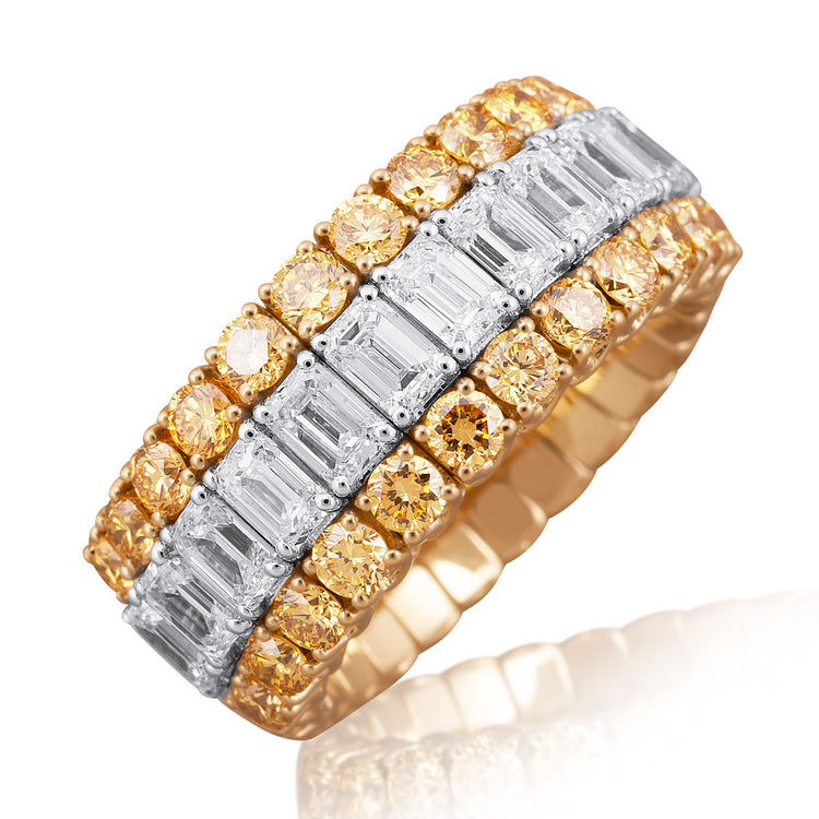 Picchiotti Xpandable™ 3.40CT Yellow and White Diamond Three Row Mixed Cut Halfway Eternity Ring