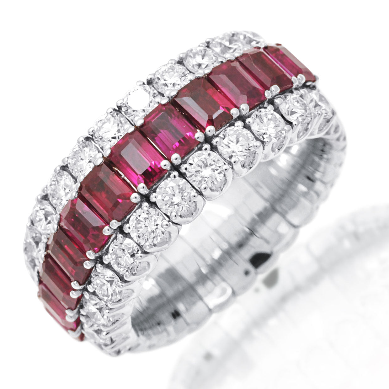 Picchiotti Xpandable™ 3.91CT Ruby and Diamond Three Row Eternity Ring