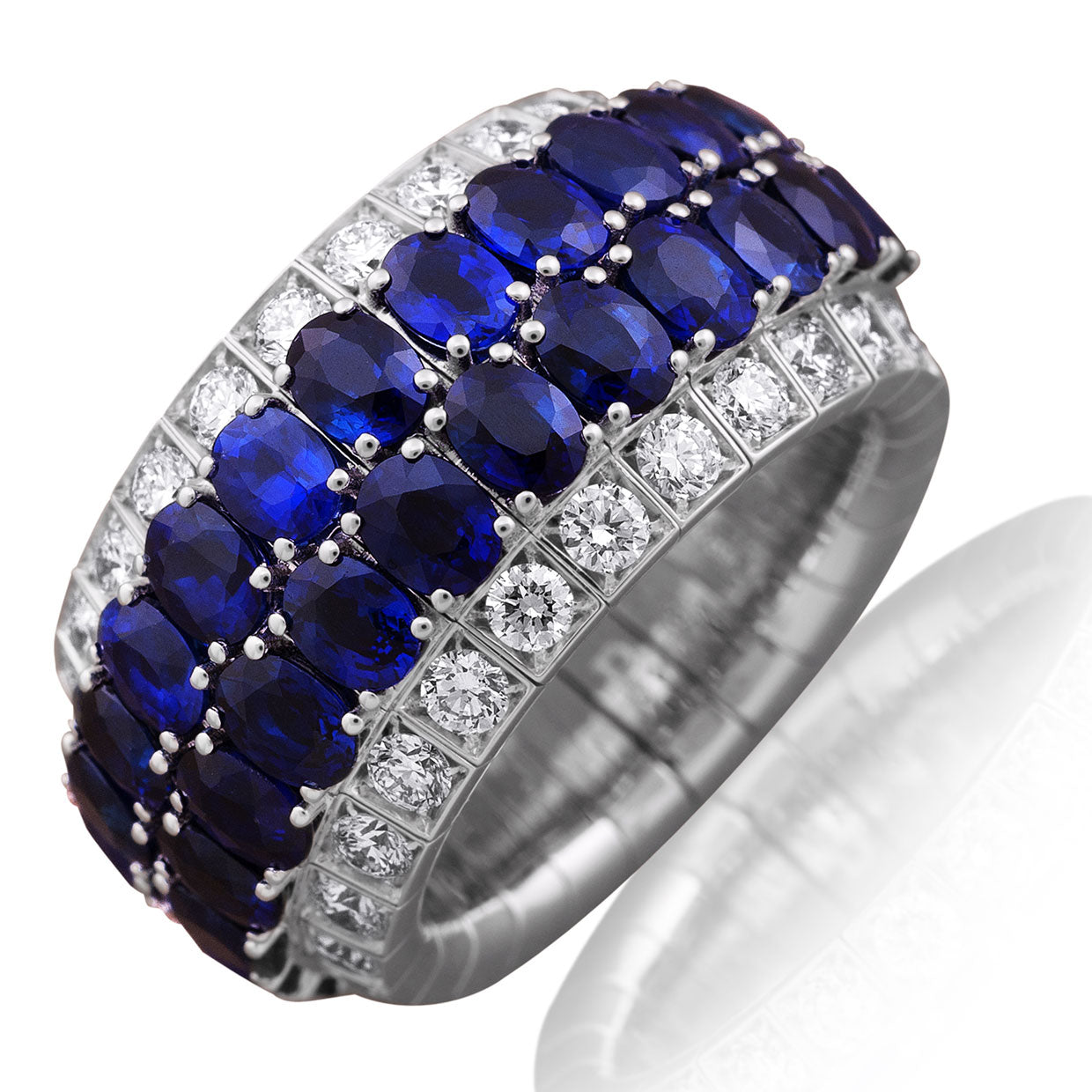 Picchiotti Xpandable™ 7.63CT Four Row Sapphire and Diamond Mixed Cut Half Way Eternity Ring