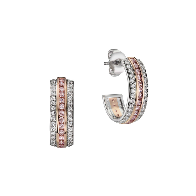 J Fine Argyle Pink and White Diamond Huggie Earrings