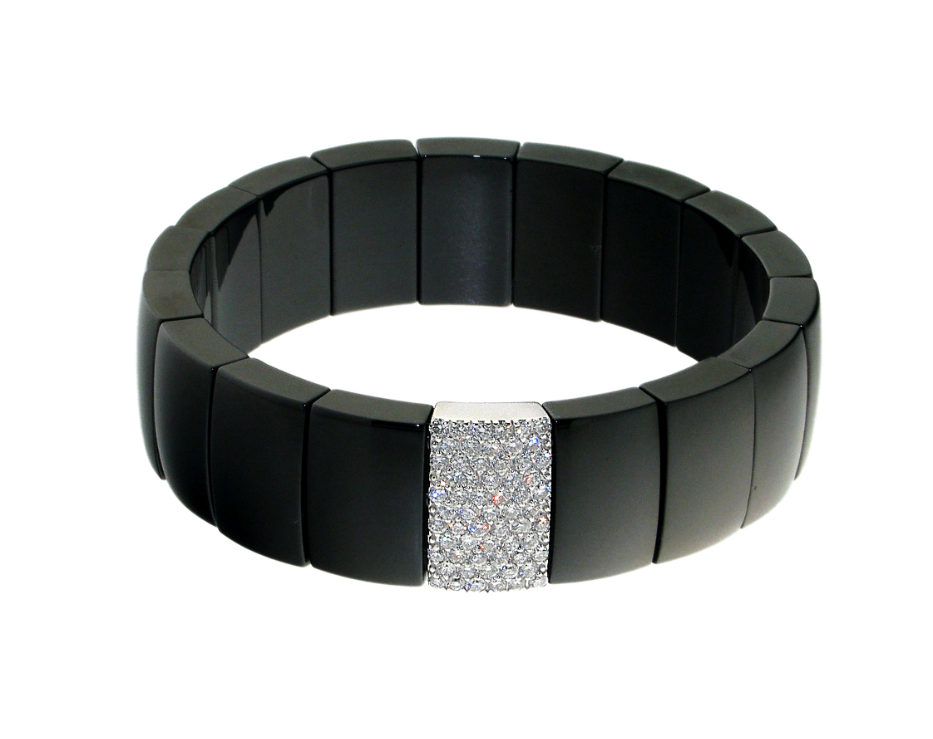 This stunning and contemporary diamond station and black ceramic bracelet created with an adjustable stretch design, offers a hint of glimmer to wrists.
