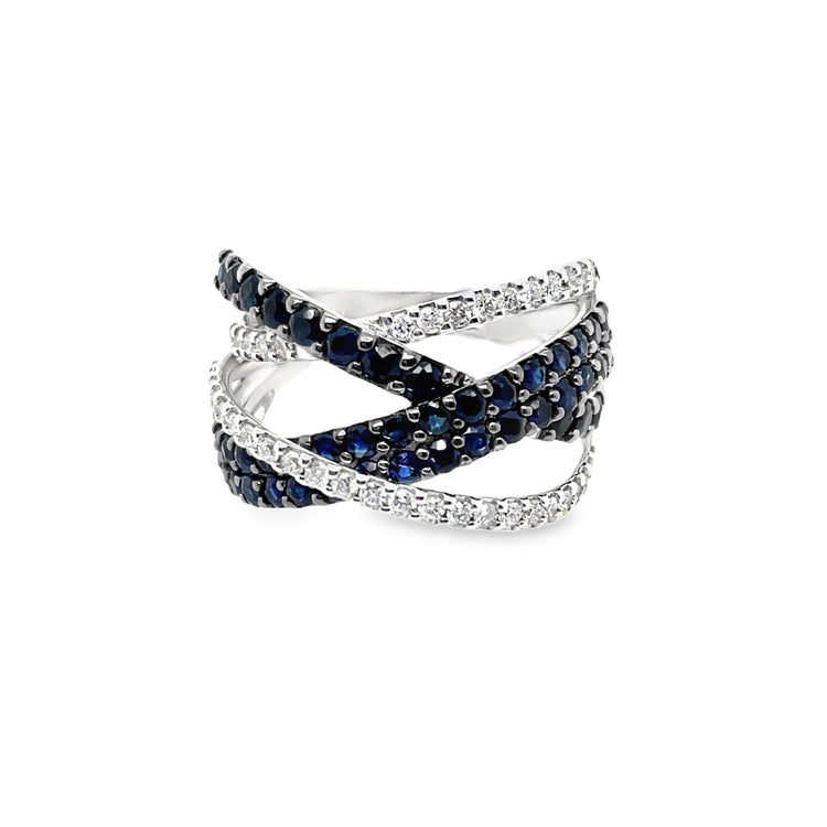 Sapphire and Diamond Criss Cross Ring