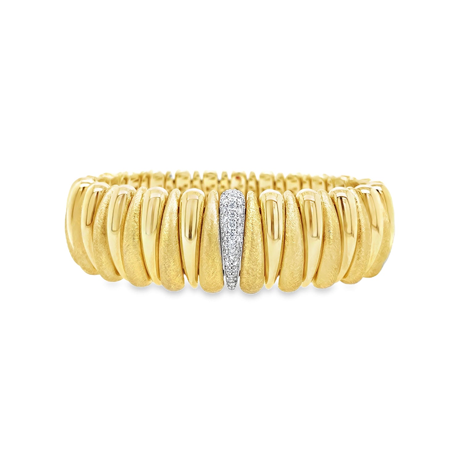 Roberto Demeglio Large Artiglio Matte and Shiny Yellow Gold Stretch Bracelet with Diamond Section