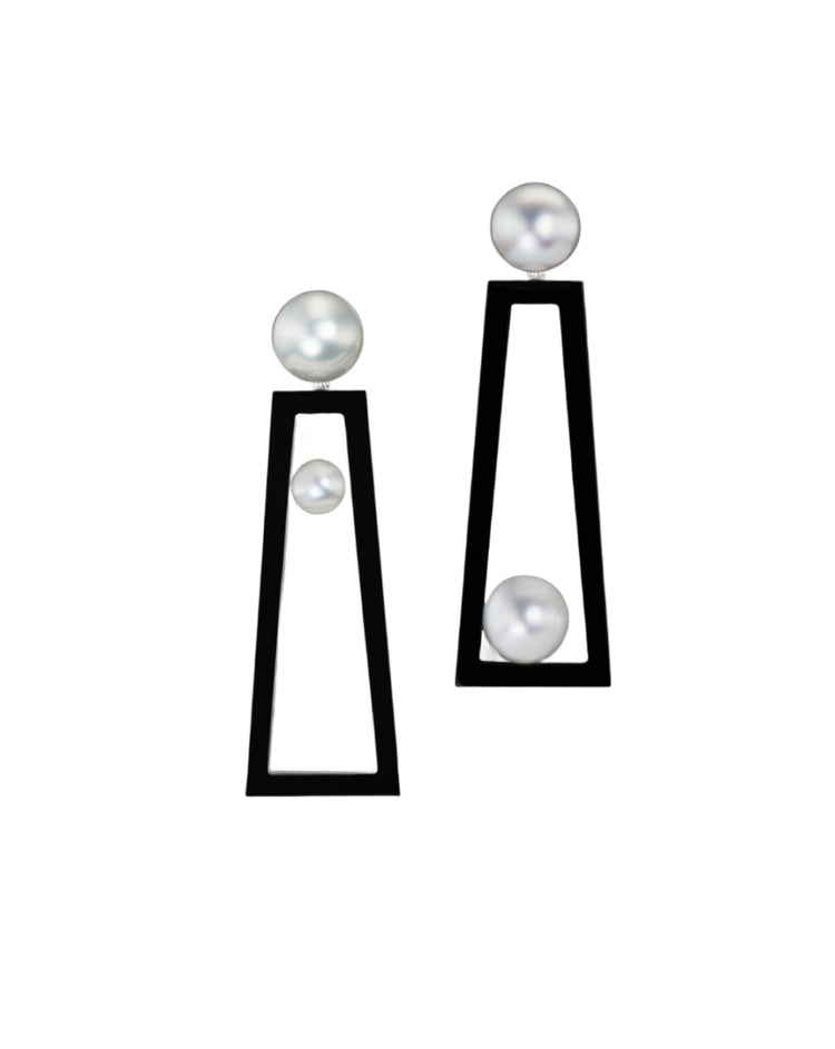 South Sea Pearl, Akoya Pearl and Black Jade "Frame" Earrings