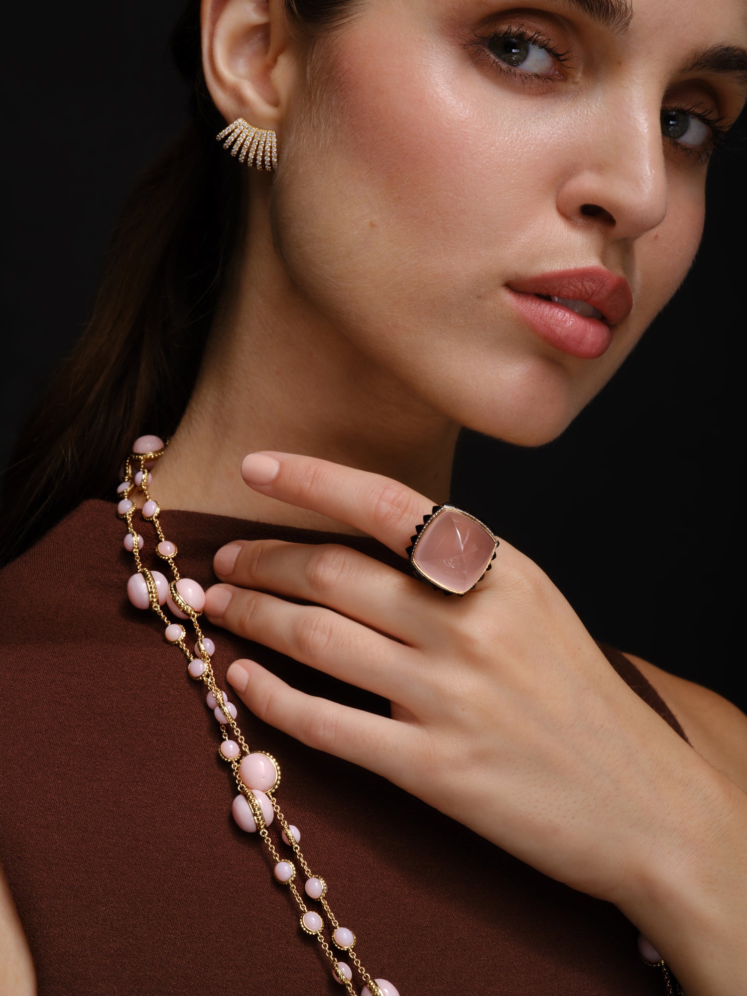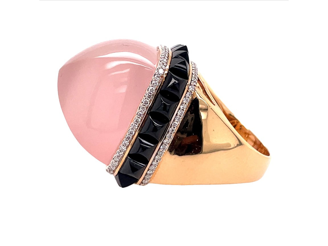 Piranesi Sugarloaf Pink Quartz and Black Onyx Ring