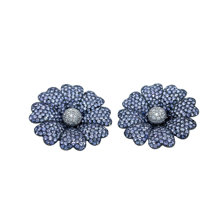 Tanzanite and Diamond Flower Earrings