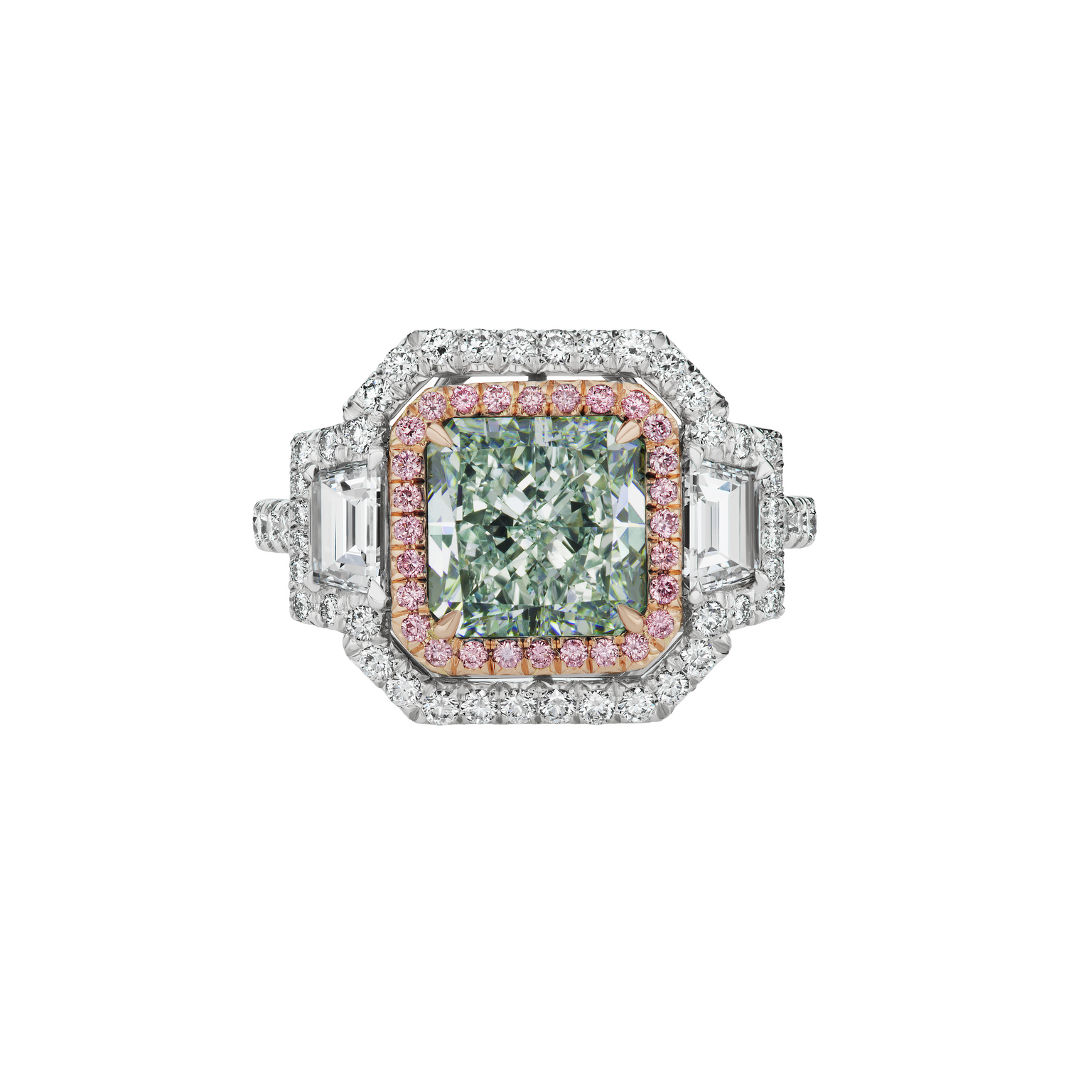 - 3.09CT Radiant Cut Fancy Light Bluish Green Diamond - VS1 Clarity, GIA# 2145143538
