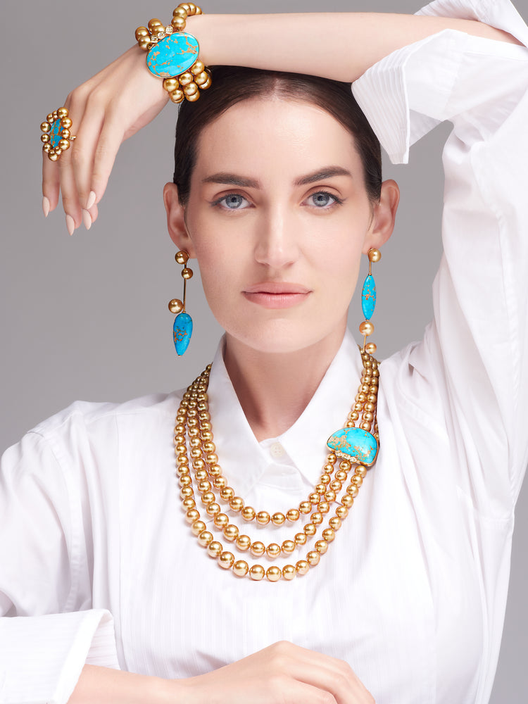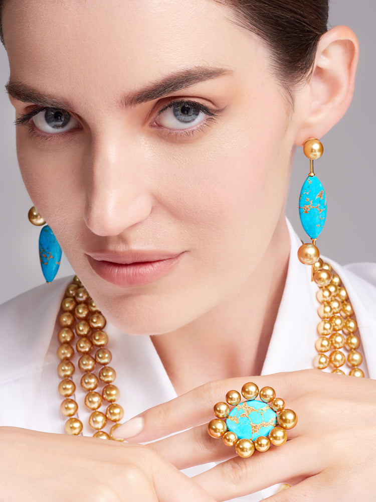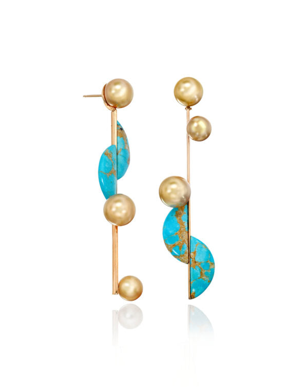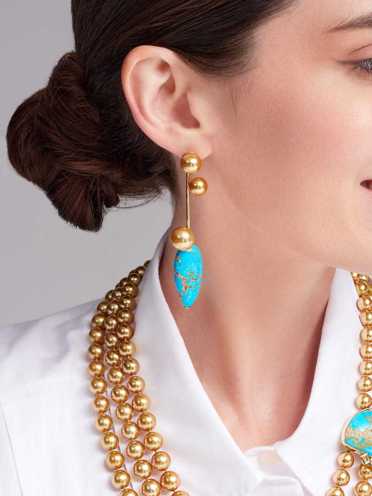 Golden South Sea Pearl and Turquoise Earrings