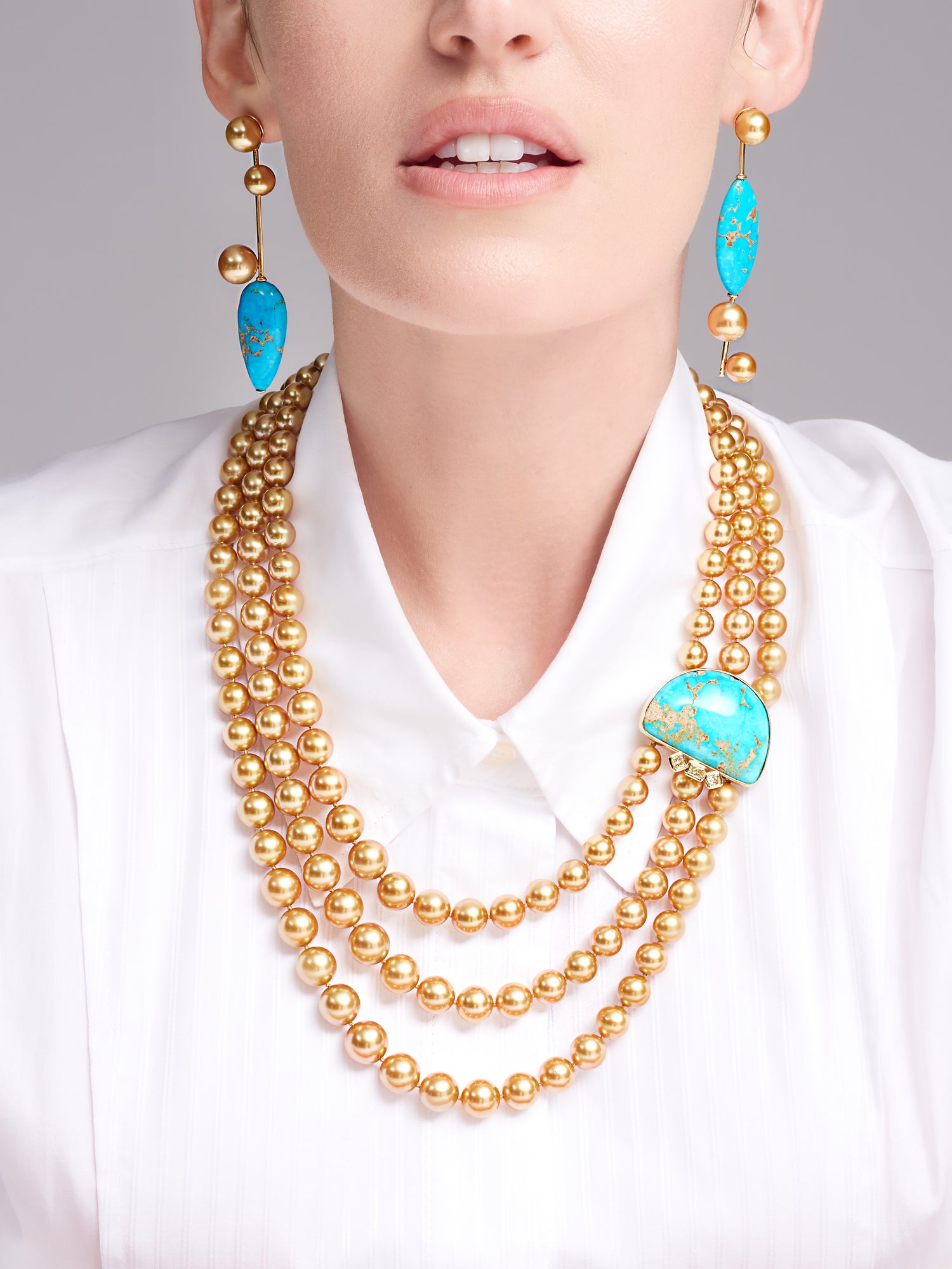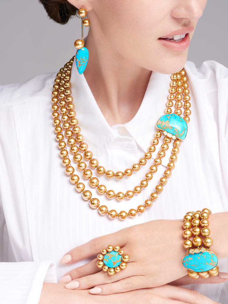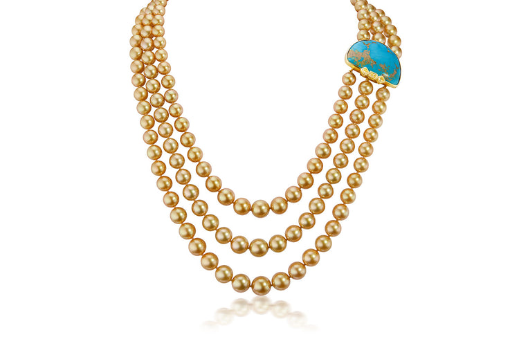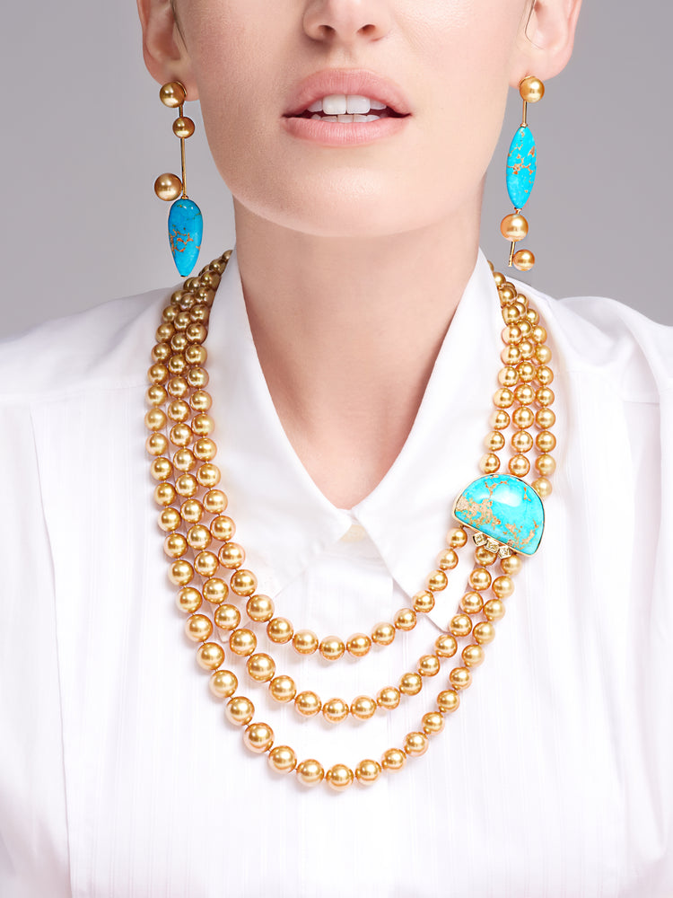 Mezza Luna Golden South Sea Pearl and Natural Turquoise Necklace