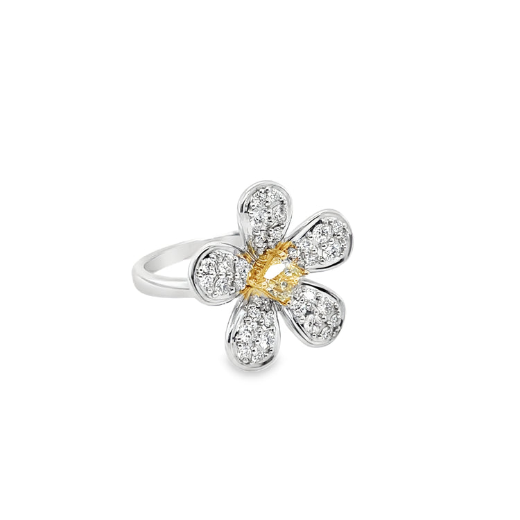 Yellow and White Diamond Daisy Ring