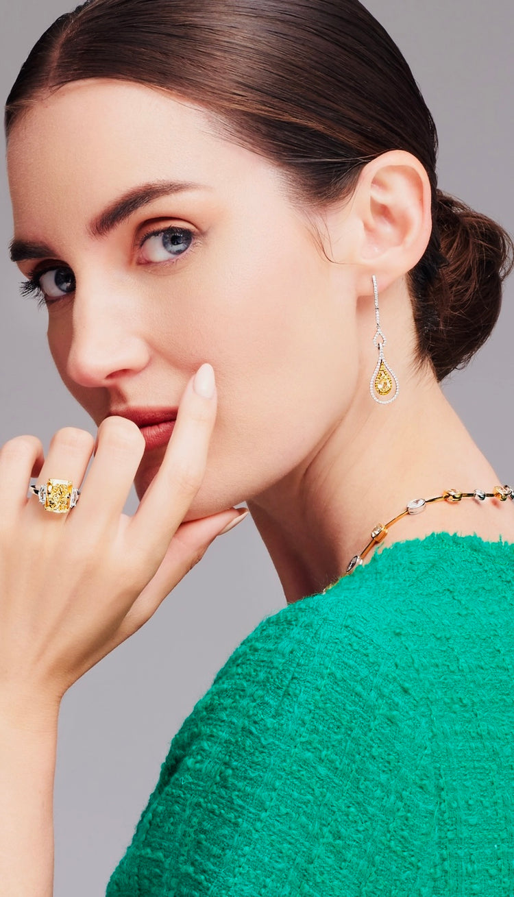 Embrace the beauty of the rainbow in these diamonds, and let their sparkle illuminate your life. The Fancy Yellow Diamond adds a vivacious yellow hue captures the warmth of the sun, while the Brilliant Round Pink Diamonds add a vibrant and feminine touch.